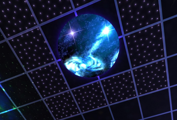 Круглая панель, имитирующая изображение звездного неба с россыпью звезд и плывущих туманностей. Роскошное оформление потолка панелью космической тематики. Посмотрев на панель, сразу погружаешься в волшебный космический мир. Разноцветная подсветка по периметру панно создает эффект глубины изображения и управляется с дистанционного пульта, который позволяет выбирать режимы светоэффектов, задавать цвета и оттенки, регулировать яркость.