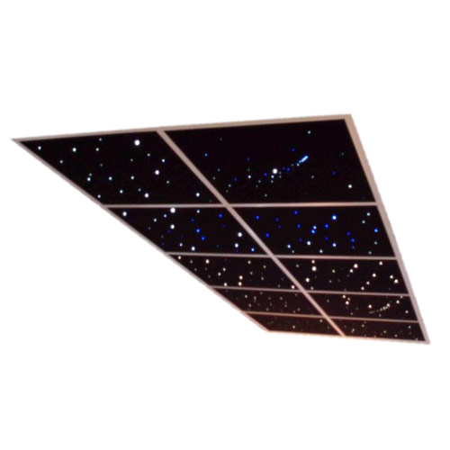 Для оформления потолка в сенсорной комнате в стиле «Звездное небо» мы предлагаем различные варианты: от подвесного потолка (Плитка «Звездное небо») до потолочных панелей на сенсорном управлении. Всеми известный и любимый вариант оформления потолка в стиле «Звездное небо», это плитки для подвесного потолка системы Armstrong(Армстронг). Плитка доставляется в нужном количестве, Вам остается лишь заменить белую плитку на данную и соединить ее между собой монтажным проводом, который идет в комплекте. У кого нет возможности приобрести плитку, нет системы подвесного потолка, советуем присмотреться к сенсорной потолочной панели «Звездное небо», которая выглядит шикарно и дает множество идей для работы с ней. Диффузионный способ нанесения эксклюзивного рисунка, глянцевая (блестящая) ламинация, множество ярких звёзд, словно волшебные бусинки рассыпанные по панели – создают непередаваемое впечатление. А сенсорное управление подсветкой по периметру панели удваивает возможности и создает дополнительный эффект глубины изображения. Данную панель можно использовать как самостоятельный светильник.